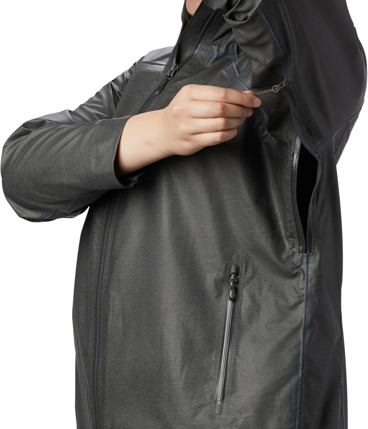 Columbia a pensĂ© Ă un capuchon tempĂŞte fixe et rĂ©glable, des poignets rĂ©glables et une couture Ă cordon ajustable pour que la veste s’ajuste bien et offre une protection individuelle et parfaite contre le vent froid et la pluie. Grâce Ă la ventilation de l’avant-bras, l’air Ă l’intĂ©rieur de la veste peut circuler facilement, de sorte que vous vous sentez agrĂ©ablement frais et dans les poches de la veste avec fermeture Ă©clair, vous pouvez ranger en toute sĂ©curitĂ© les objets essentiels. Les coutures sont scellĂ©es de l’extĂ©rieur par du ruban adhĂ©sif et les fermetures Ă glissière de la poche principale et de la veste sont enduites de PU.