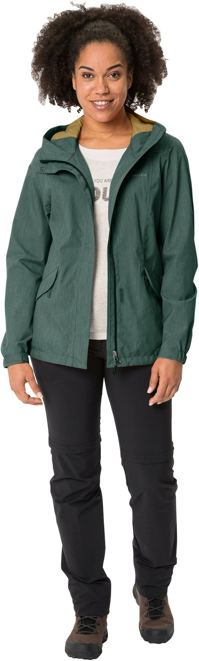 La Rosemoor Jacket est une veste de pluie polyvalente pour la randonnĂ©e et les voyages. Cette veste respirante protège efficacement du vent et de la pluie. Une aĂ©ration discrètement intĂ©grĂ©e au niveau du dos favorise la rĂ©gulation thermique du corps. La capuche, les poignets et la ceinture sont rĂ©glables en largeur. Ce matĂ©riau Ă©cologique Ă l’aspect chinĂ© tendance est par ailleurs du plus bel effet – en ville ou en pleine nature.Ce produit est impermĂ©abilisĂ© avec la finition Eco Finish, Ă©cologique et sans fluorocarbures (PFC). Le label Green Shape de VAUDE garantit un produit Ă©cologique, fonctionnel et fabriquĂ© dans des matĂ©riaux durables.